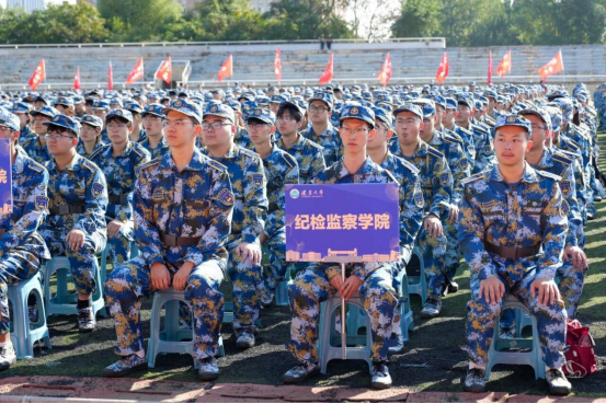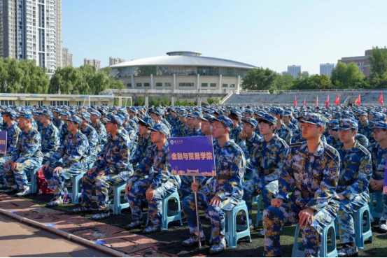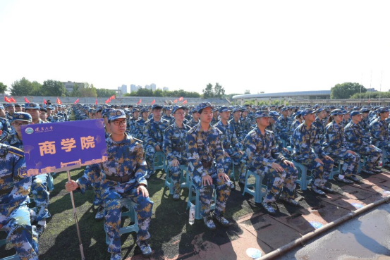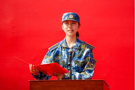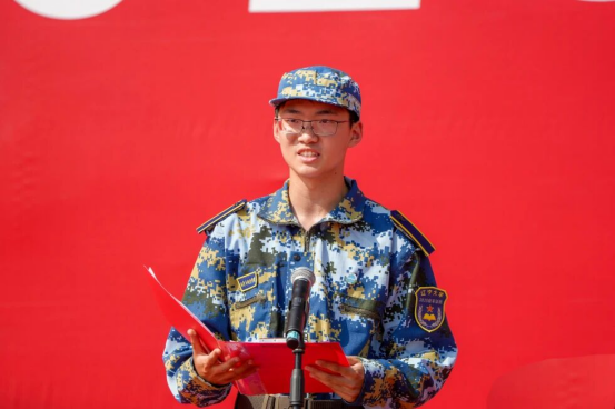 Li Xiang, representative of the instructors for the self-directed military training phase, a former soldier of the Navy of the Northern Theater Command of the Chinese People’s Liberation Army, and a student of the 2022 cohort majoring in Business Administration at the Sunwah International Business School, delivered a speech. Hao Zijia, a freshmen representative and majoring in Finance at the School of Finance and Trade, delivered a speech expressing the freshmen’s determination for the military training.