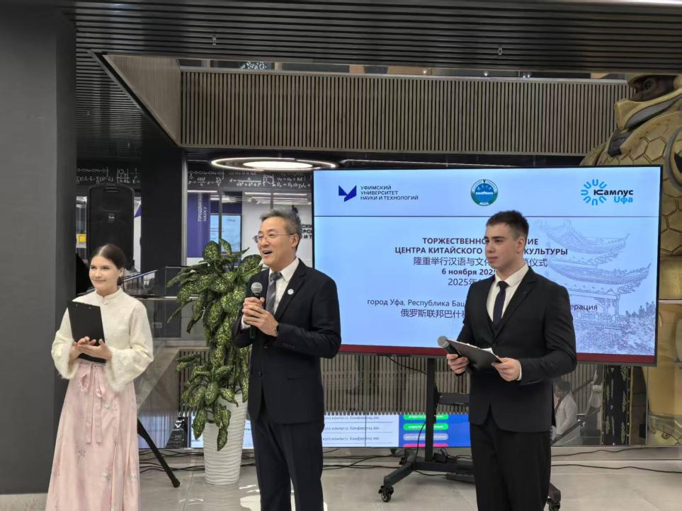 At the opening ceremony, Huo Chunhui delivered a speech on behalf of LNU. He pointed out that on November 3 this year, Premier Li Qiang and Prime Minister Mishustin successfully held the 30th Regular Meeting of the Chinese and Russian Prime Ministers in Hangzhou, and agreed to support Chinese language teaching in Russia and Russian language teaching in China, and enhance exchanges among young students. He said that the official launch of the Chinese Language and Culture Center is a positive response to and concrete implementation of the consensus reached by the prime ministers of the two countries, marking a new stage in the cooperation between the two universities. He hoped that the center would truly become a solid bridge connecting the friendship between China and Russia, open up broader space for deepening bilateral educational cooperation and promoting people-to-people bonds, and inject lasting and profound impetus into the open dialogue and cultural mutual learning between the two peoples.