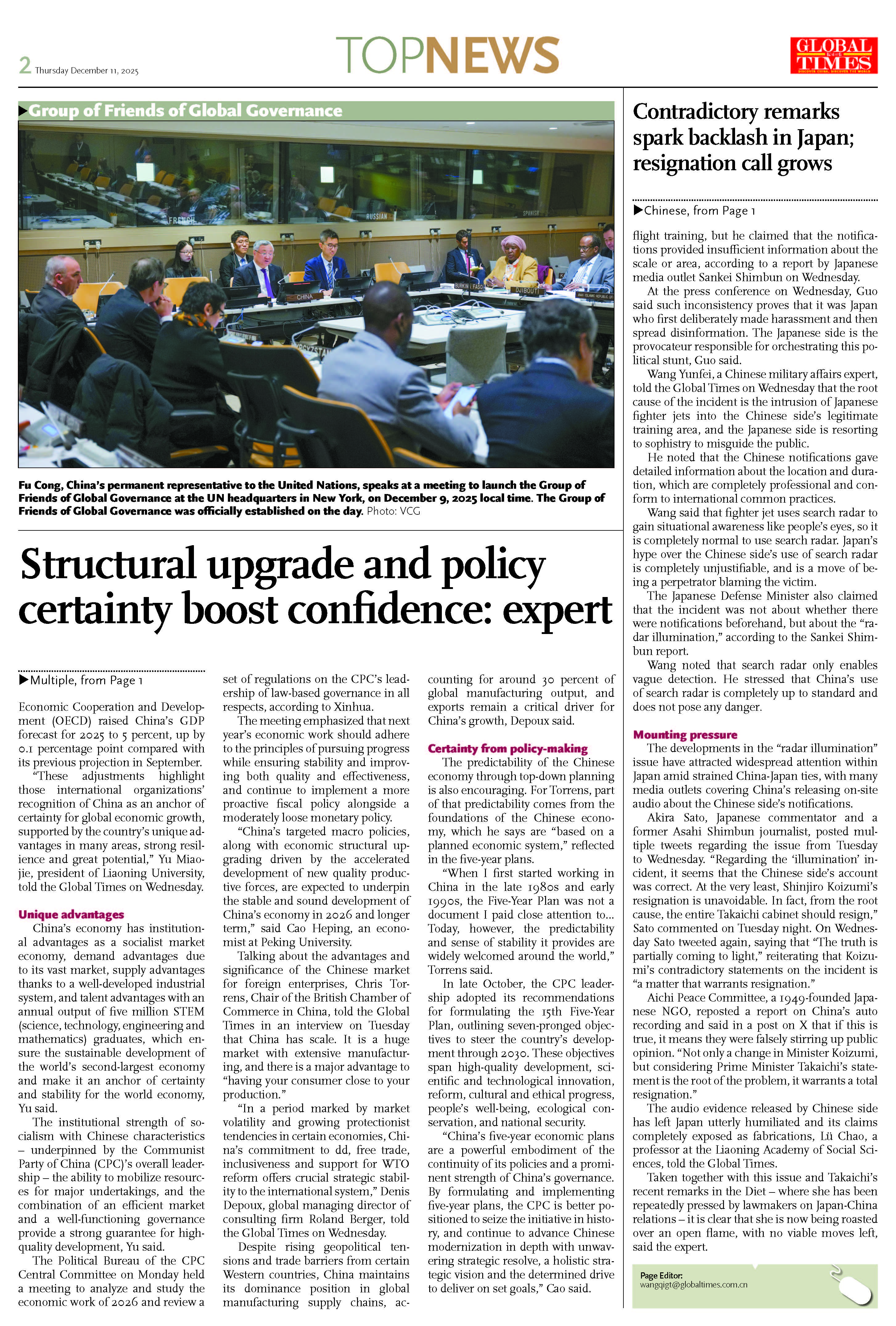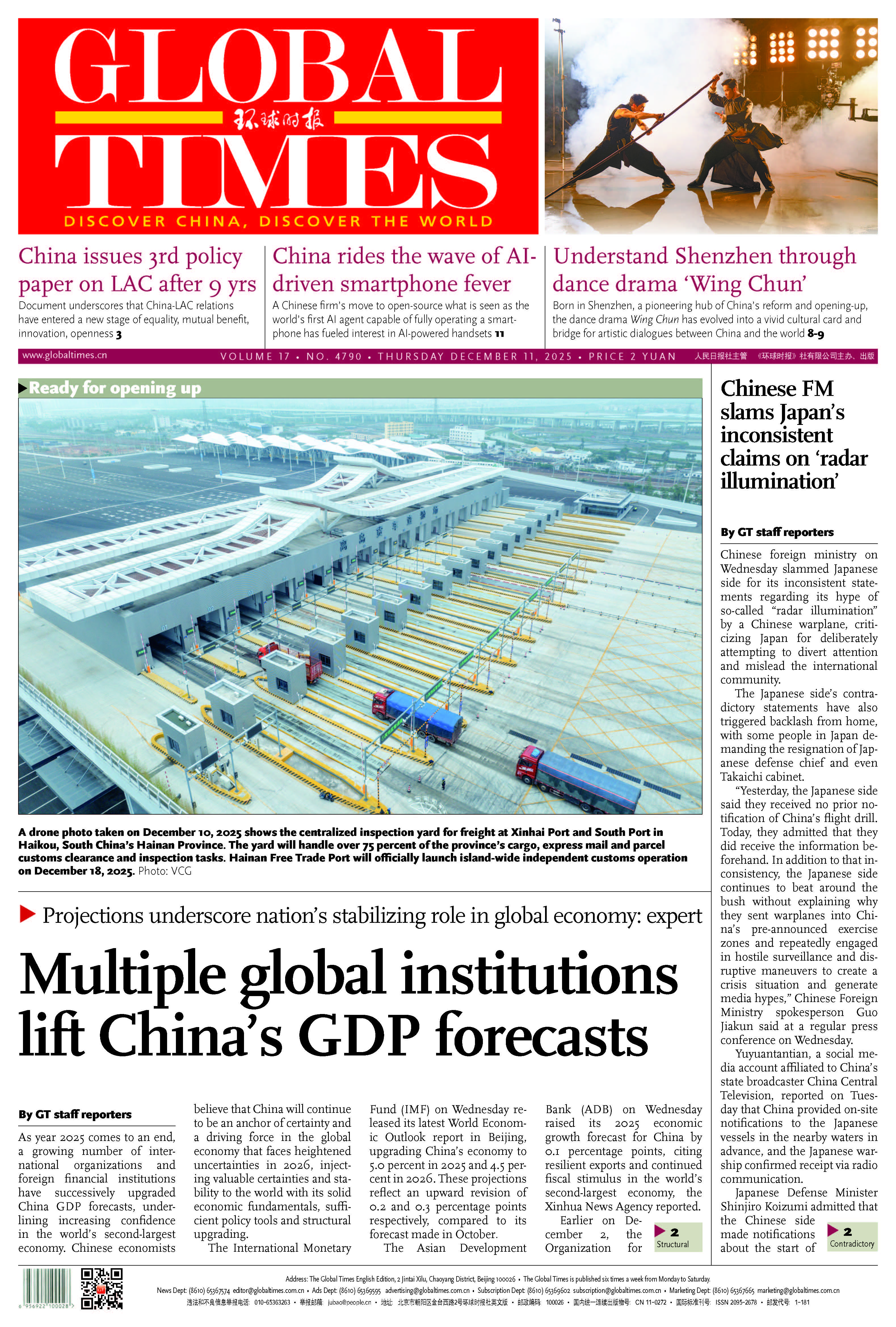 "China's targeted macro policies, along with economic structural upgrading driven by the accelerated development of new quality productive forces, are expected to underpin the stable and sound development of China's economy in 2026 and longer term," Cao Heping, an economist at Peking University, told the Global Times on Wednesday.