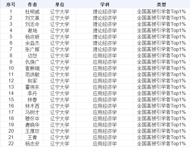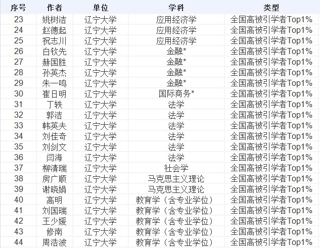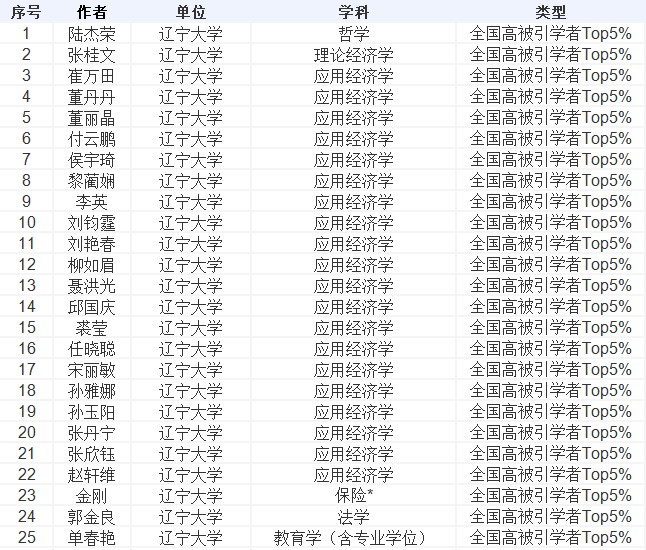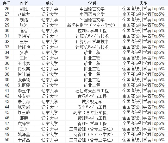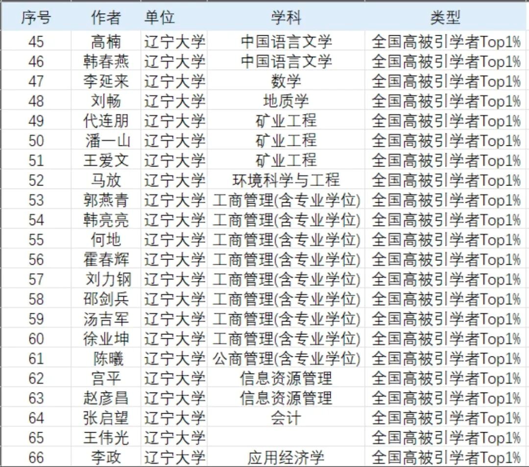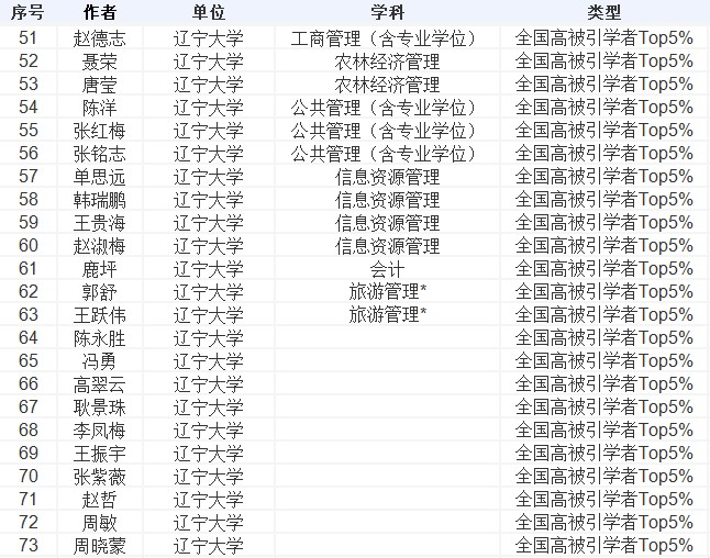 A total of 139 scholars from LNU were selected as national highly cited researchers, among whom 66 were included in the Top 1% and 73 in the Top 5%.
