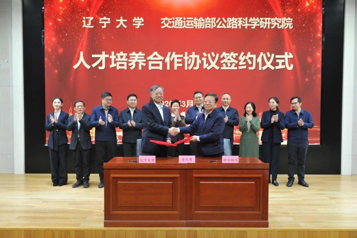 At the signing ceremony, Pan Yishan stated that as a national Double First-Class university, LNU has a complete talent training system covering undergraduate, postgraduate and doctoral programs, multi-level and high-level scientific research and innovation platforms, and a profound foundation for interdisciplinary integration. The establishment of a talent training cooperation relationship with the Research Institute of Highway this time will provide an important carrier and platform for the university to thoroughly practice the school-running philosophy of “seeking real scenarios outside the campus, exploring real problems in society, and pursuing pragmatic innovation at the forefront”, advance the integrated school-running practice of education, science & technology and talents driven by real problems in social scenarios, and deepen the collaboration of industry, university, research and application. Standing at the new starting point of all-round and in-depth cooperation between the two sides, the university will optimize top-level design, allocate high-quality resources, improve the cooperation guarantee mechanism, and uphold the principle of “complementary advantages, mutual benefit, long-term cooperation and common development”. It will work hand in hand with the Research Institute of Highway to create a benchmark example of collaborative education and innovation between universities and national-level research institutes, and contribute to accelerating the construction of a strong education country and a strong transportation country.