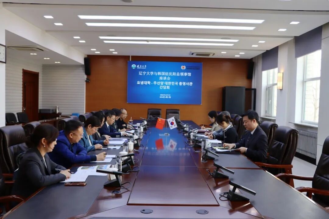On April 1, 2026, Consul General of the Republic of Korea in Shenyang Kim Sung-min and his delegation visited Liaoning University (LNU) for a symposium. Yu Miaojie, President of LNU, met with the visiting guests at the Puhe Campus. The symposium was presided over by Xie Mingyi, Director of the Office of International Affairs of LNU.